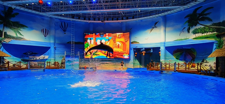 該場(chǎng)館分為淡水生物展示區(qū)、海水生物展示區(qū)、水母展示區(qū)、科普互動(dòng)展示區(qū)、萌寵動(dòng)物展示區(qū)、白鯨行為演繹展示區(qū),海豚秀場(chǎng)等組成,館內(nèi)展示各種水生動(dòng)物四百余種,三萬余尾(條),陸生動(dòng)物一百余種,三百余只(頭),更有極具科普和觀賞價(jià)值的多種珍惜海洋動(dòng)物。